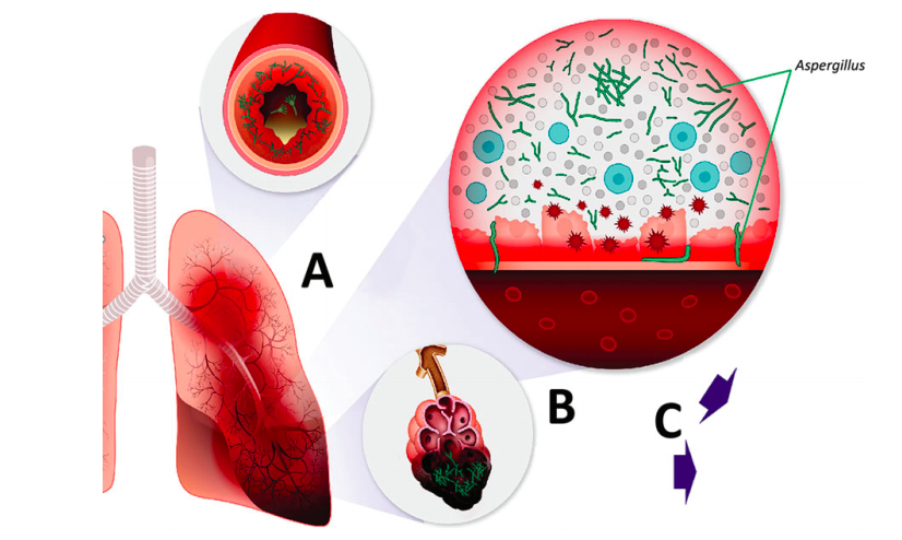 The syndromes of pulmonary aspergillosis complicating severe viral infections are distinct from classic invasive aspergillosis, which is recognized most frequently in persons with neutropenia and in other immunocompromised persons. Combined with severe viral infection, aspergillosis comprises a constellation of airway-invasive and angio-invasive disease and results in risks associated with poor airway fungus clearance and killing, including virusor inflammation-associated epithelial damage, systemic immunosuppression, and underlying lung disease.