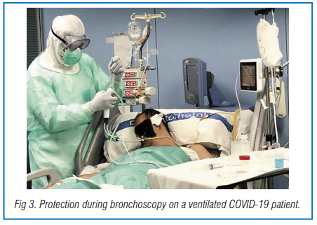 Bronchoscopy remains an important diagnostic and therapeutic tool in critically ill patients. Strict indication for performing bronchoscopies; elective procedures should be postponed. Ask about the epidemiological history, especially the history of travel and COVID-19 patient contact. Measure the temperature of the patient before the procedure (with a noncontact device if available). Nasopharyngeal swab test for SARS-CoV-2 reverse transcriptase ribonucleic acid (RT-DNA PCR) before the procedure. The patient should be categorized according to their COVID-19 status as (1) Confirmed, (2) Probable, (3) Not Probable, or (4) Negative. Patients with clinical findings for COVID-19 should be categorized as “Probable” irrespective of the result of the nasopharyngeal swab and only patients with negative nasopharyngeal swab and which is atypical for COVID-19 should be labeled as “Negative.”